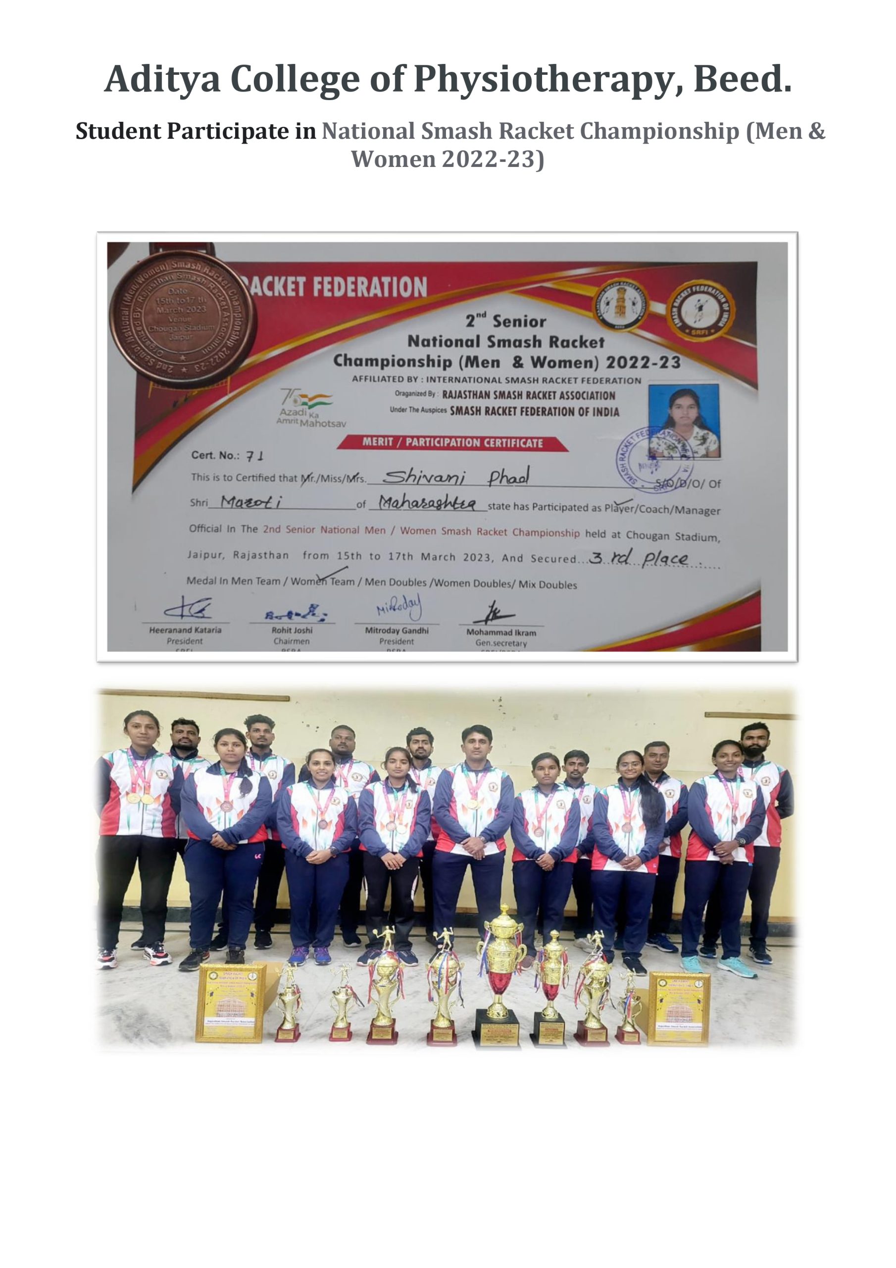 आदित्य कॉलेज ऑफ फिजिओथेरपी, बीड – ४३११२२ (महाराष्ट्र)